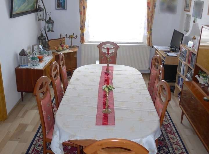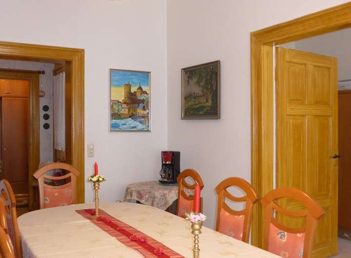 - Mehrfamilienhaus, Baujahr vor 1900, sanierungsbedürftig, zum Teil unterkellert, EG in der Vergangenheit als Fleischerei genutzt - in den 1990er-Jahren Haustür- und Heizungseinbau, Therme ca. 1992, Warmwasserbereiter 2019, ab 2000 Fenster, Elektrik und Bäder im 1. und 2. Obergeschoss erneuert, ca. 2008 größtenteils neue Dacheindeckung, ca. 2009 Vollwärmeschutz Giebelseite, Trockenlegung mit Drymat- System seit 2021 - weiterer Sanierungsbedarf besteht, vor allem Stahlträger im Keller, Räume im EG, eventuell Dachgeschossausbau - im EG: ehemals als Wohnung genutzte Einheit mit ca. 60 m² Wohnfläche, Heizraum und Werkstatt - im 1. OG: 4-Zimmer-Wohnung, teils mit gefangenen Zimmern, ca. 90 m² groß, eigengenutzt, bei Verkauf freiwerdend - im 2. OG: 4-Zimmer-Wohnung mit einem gefangenen Zimmer, ca. 90 m² Wfl., vermietet, Mieteinnahme netto ca. 450 EUR im Monat - im DG: Abstellkammern, Ausbau zu Wohnfläche denkbar, teils vorbereitet - Grundstück voll erschlossen, ca. 260 m² groß, zusätzlich mit Garage und Nebengelass bebaut keine zusätzliche Käuferprovision