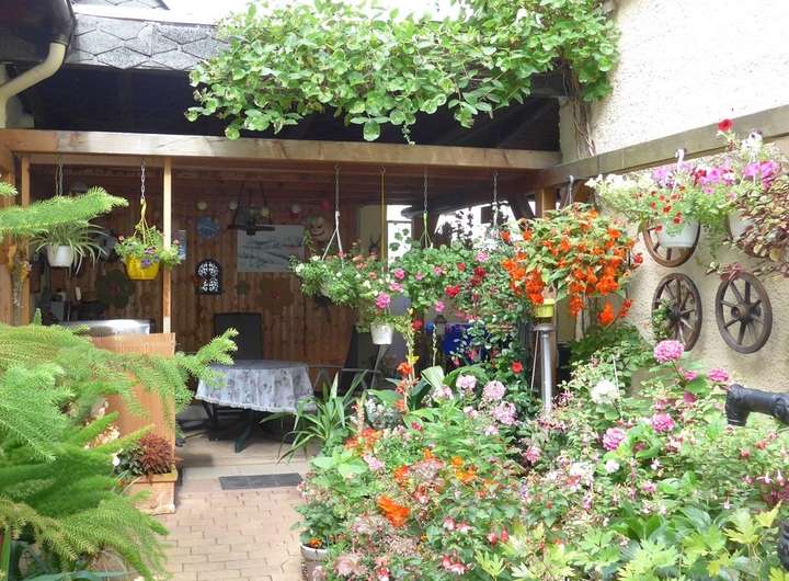 kleines, stilvolles Gebäude mit Garage