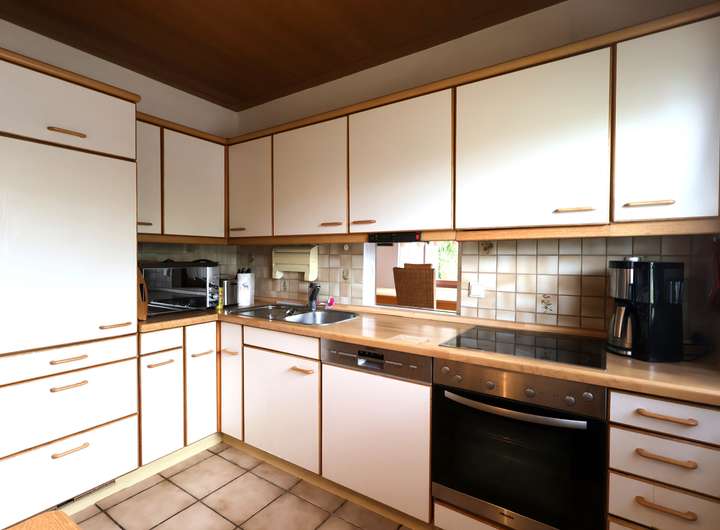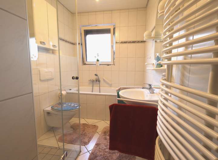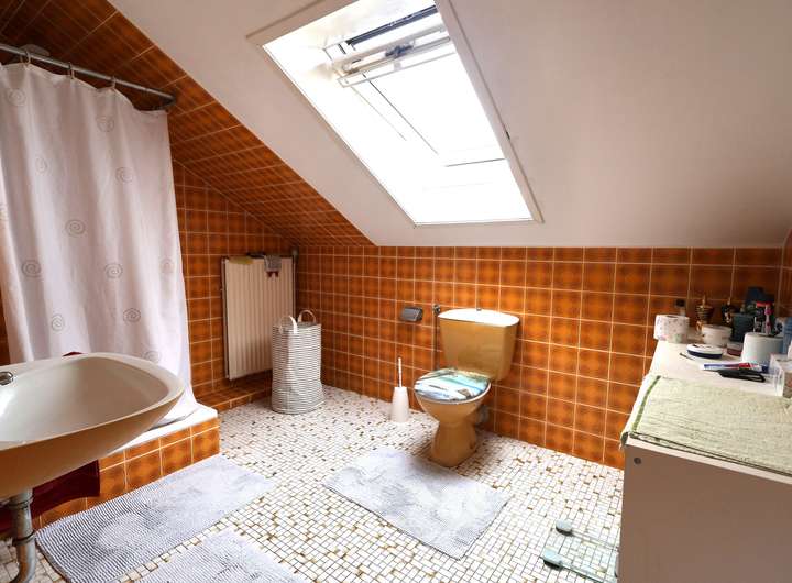 In den oberen Zimmern finden Sie hochwertig verarbeitete Einbauschränke mit viel Stauraum. Des Weiteren befindet sich auf der oberen Etage ein Badezimmer im 70 er Jahre Stil, welches sehr gepflegt ist. Ein weiterer Raum grenzt direkt an das Badezimmer an, welche individuell genutzt werden kann.