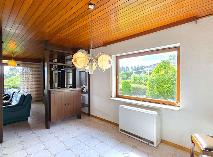 Das Haus wurde 1972 in massiver Bauweise errichtet und über die vergangenen Jahrzehnte regelmäßig modernisiert. Die größten Maßnahmen erfolgten zwischen 2010 und 2020. Dazu zählen u. a. die Nachtspeicheröfen aus dem Jahr 2010, neue Fußböden, eine moderne Einbauküche im Erdgeschoss sowie die Dämmung von Dach und Fassade im Jahr 2016. Die Fenster im Erdgeschoss sind als 2-fach verglaste Holz-Aluminium-Verbundelemente aus 2010 ausgeführt, während im Dachgeschoss die originalen Meranti-Holzfenster aus dem Baujahr – in sehr gutem Zustand – erhalten geblieben sind. Die Heizversorgung erfolgt über separate Nachtspeicheröfen, ergänzt durch Kaminöfen für eine besonders behagliche Atmosphäre in den Wohnbereichen. Zu- und Abwasserleitungen sowie die Elektroinstallationen befinden sich insgesamt in einem guten Zustand, wobei lediglich einzelne FI-Schalter im Erdgeschoss nachgerüstet werden sollten.