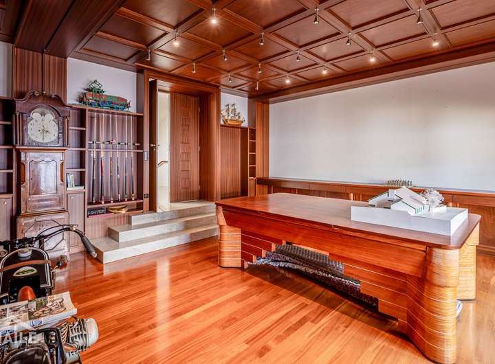 Ein weiteres Highlight im Erdgeschoss ist der Salon / die Trophy Hall, die mit hochwertigen Wandvertäfelungen beeindruckt.