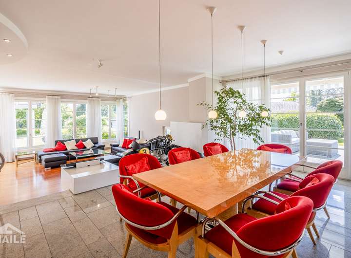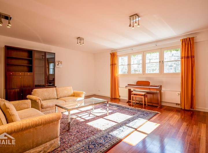 Im Untergeschoss überzeugen vor allem die schöne Einliegerwohnung, der repräsentative Weinkeller, der Lastenaufzug von der Garage zur Küche mit angrenzender Kühlkammer sowie ein großer Hobby- und Fitnessbereich. Auch der Waschbereich mit internem Aufzug zur Ankleide ist ein echtes Highlight.
