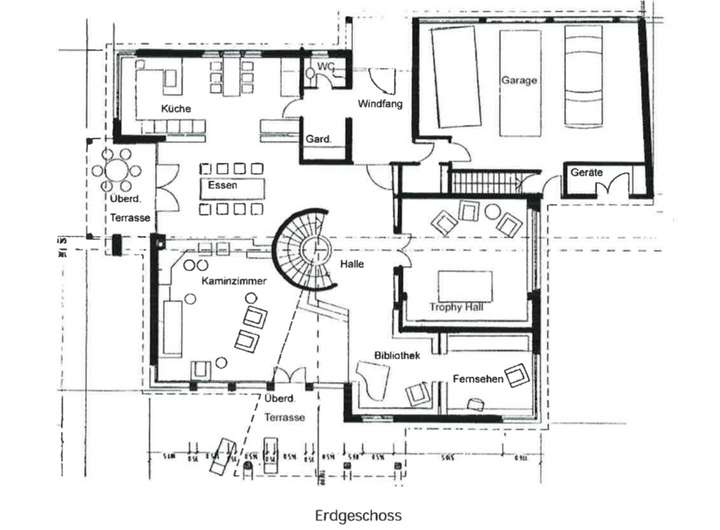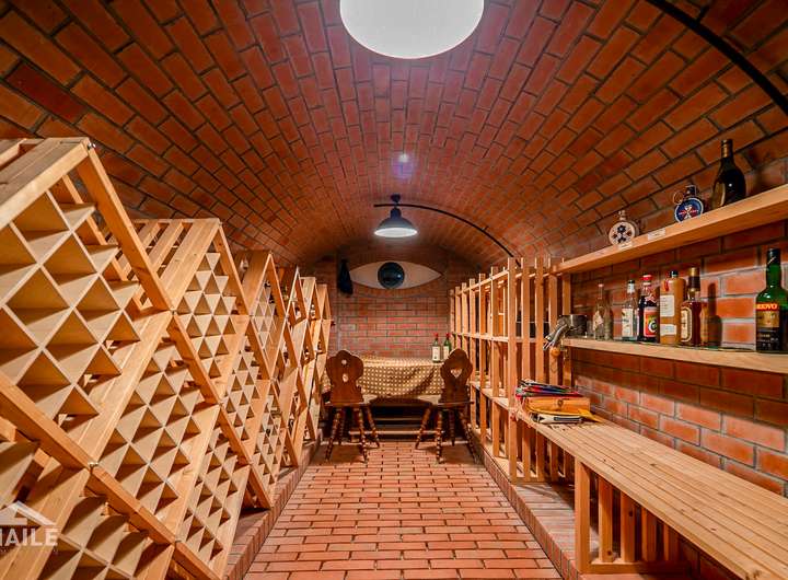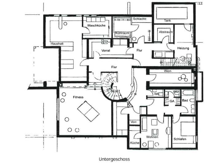 Einliegerwohnung mit zwei Zimmern, Küche und Bad, Weinkeller, großer Wasch- und Trockenbereich, großzügiger Hobby-/Fitnessraum, diverse Abstellräume, Jagdküche und Kühlhaus mit Warenaufzug direkt aus der Garage.