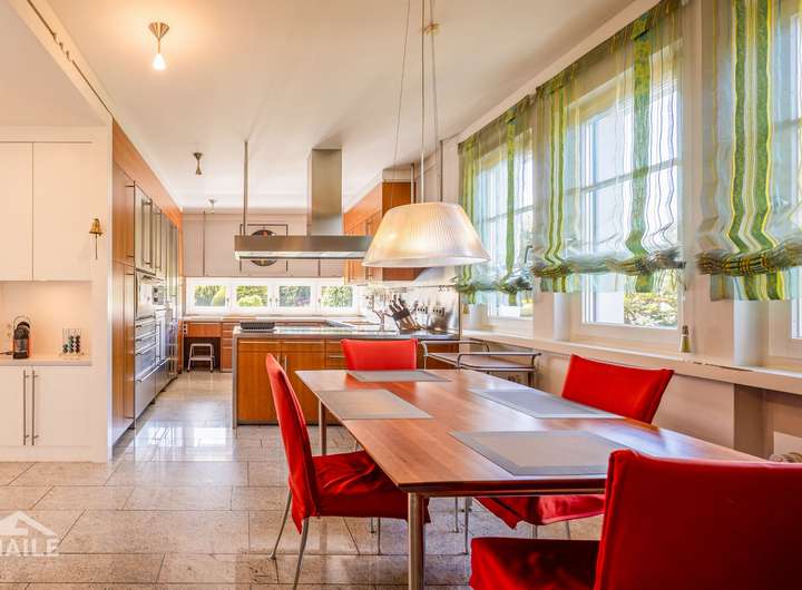 Die durchgehend sehr hochwertig ausgestattete Villa überzeugt durch ihren hellen und dennoch gemütlichen Charakter, die vielseitige Nutzbarkeit und die schiere Größe der Flächen sowie durch zahlreiche, sehr praktische Nebenräume.