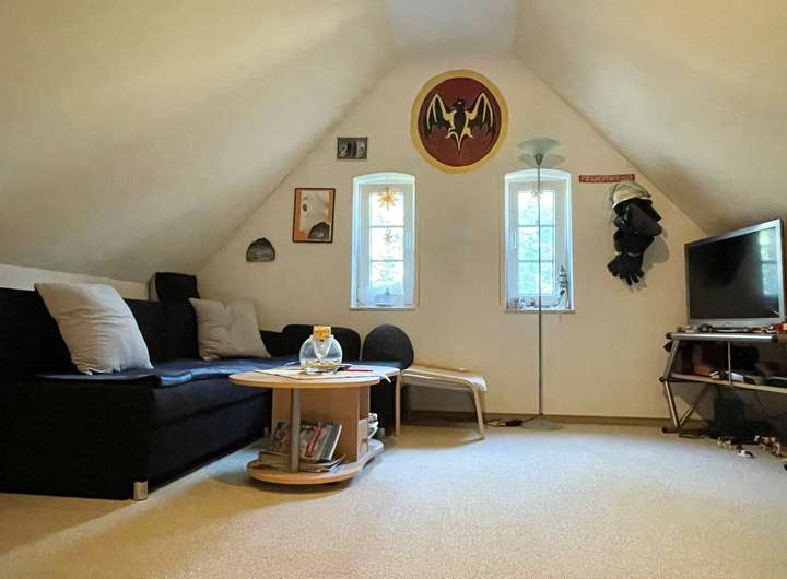 - weiterer Dachbodenraum mit zusätzlicher Lagerfläche (ursprünglich mit Sauna geplant, daher liegt Wasser und Starkstrom bereits an)