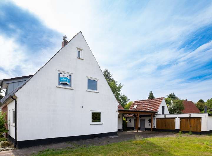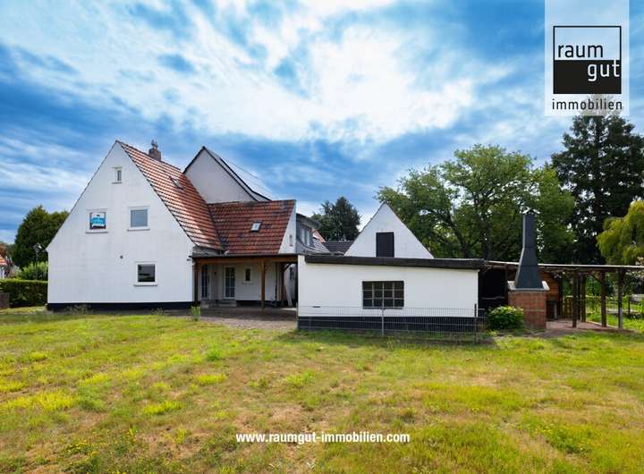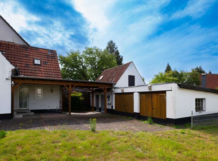 Die insgesamt ca. 957 m² des Grundstücks sind aktuell bebaut mit einer Doppelhaushälfte aus dem Jahre 1938 im wirtschaftlich überalterten Zustand, welche jedoch vielfältige Entwicklungsmöglichkeiten bietet. Mit einem Keller und einem ausgebauten Dachboden umfasst das Haus auf zwei Etagen verteilt eine Bruttogesamtfläche von ca. 142 m². Neben dem Wohnhaus bestehen zudem noch Anbauten in Form eines geräumigen Schuppens und zwei separaten Garagen.
