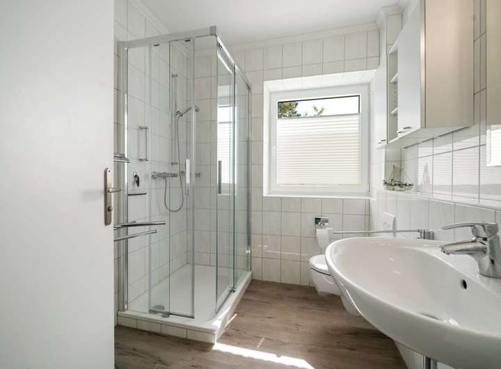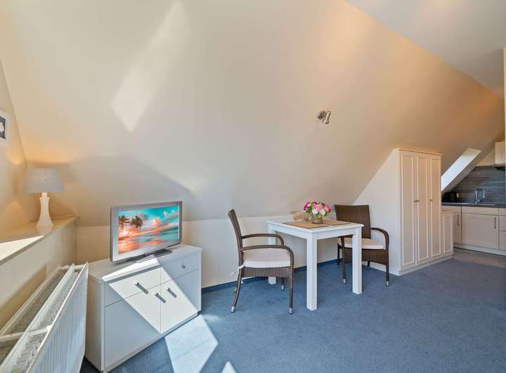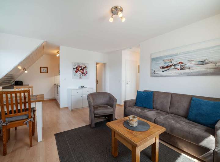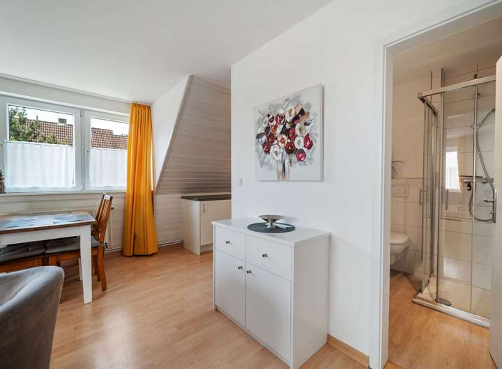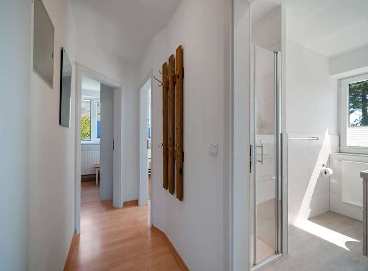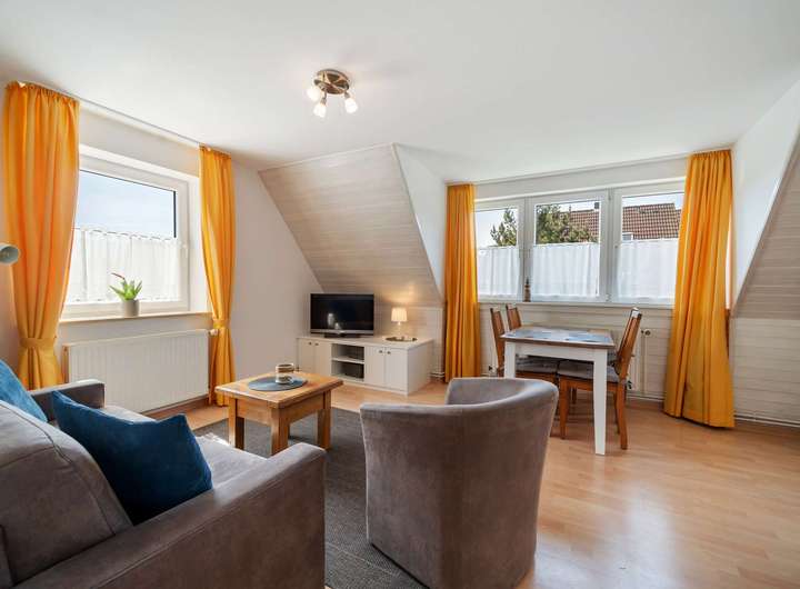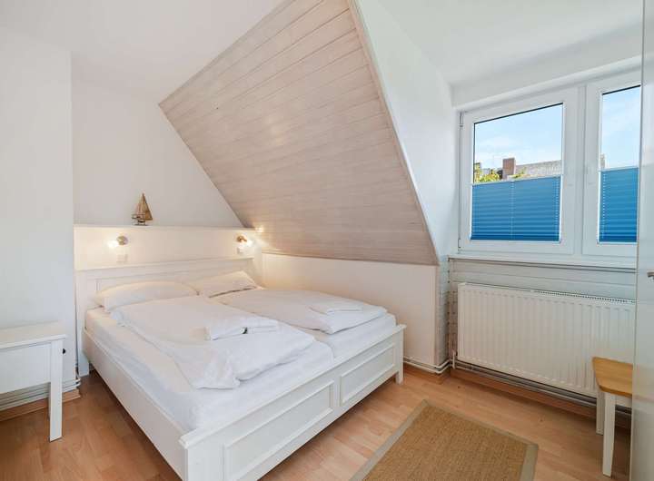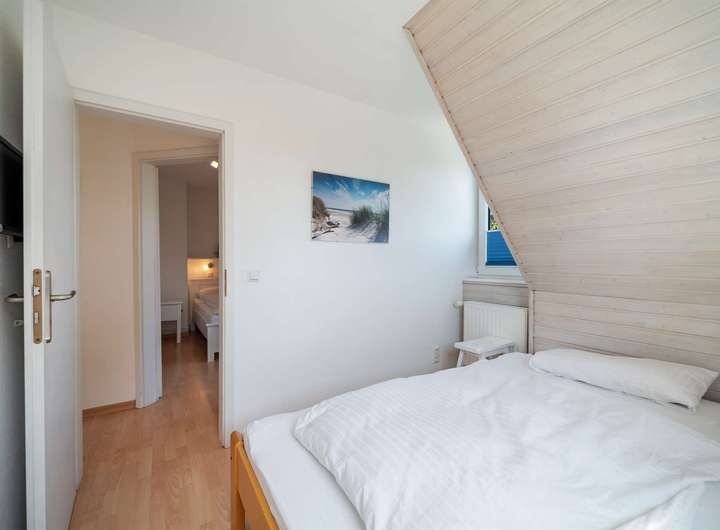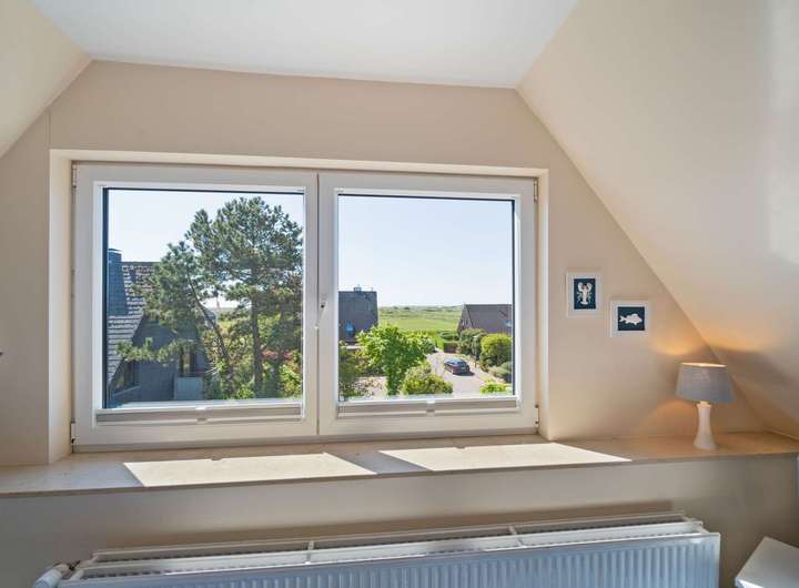 Der ausgebaute Spitzboden bietet zusätzlichen Platz zur individuellen Nutzung, beispielsweise als Arbeits- oder Hobbybereich. Von hier genießt man einen schönen Ausblick über die nahegelegenen Salzwiesen in südlicher Richtung.