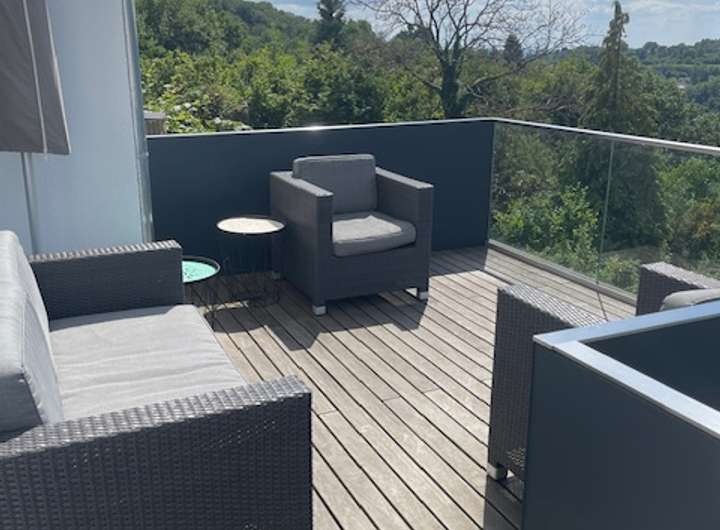 Es handelt sich um eine kompl. entkernte und einseitig neu angebaute Immobilie in beliebter Lage von Wiesbaden-Rambach mit unverbaubarem Fernblick. Eine besondere Immobilie, die einem Neubau gleichkommt. Alle Räume sind lichtdurchflutet, alle Räume haben bodentiefe Fenster, selbst die Bäder haben große Fensterflächen. Der Garten ist pflegeleicht, allerdings bietet jede Etage einen Ausgang auf eine Sonnenterrasse. Im Erdgeschoß haben wir eine sehr schöne Eingebaute Wohnküche, ein Gäste-WC, ein Flur und Treppenhaus sowie das Wohn/Eßzimmer sowie eine Terrasse. Im 1. Obergeschoß sind 3 Zimmer, 1 modernes großes Bad mit Wanne und Dusche, ein Raum mit Küchenanschlüssen und eine Terrasse. Im Dachgeschoß ist ein Gäste-Zimmer, ein Bad, ein Schlaf- und Ankleidezimmer. Durch die Hanglage ergeben sich 2 Untergeschosse, eine Etage ist noch gut als Büro und Gästebereich nutzbar, ein Teil Waschraum und Abstellfläche und im 2. Unterschoß sind noch 2 Abstellräume und eine sehr große Terrasse führt in den Garten.