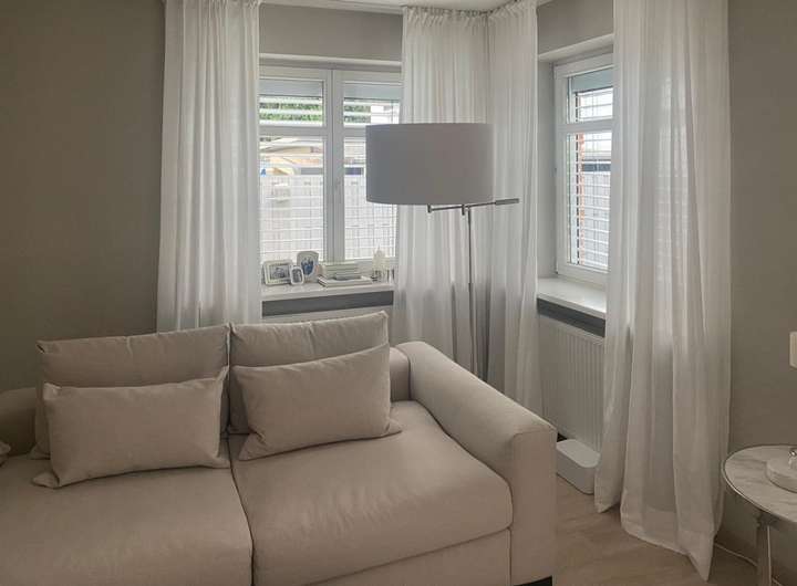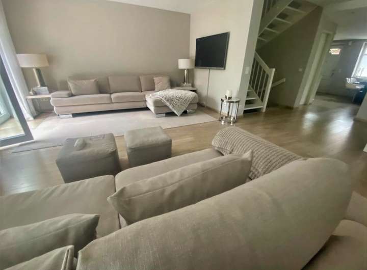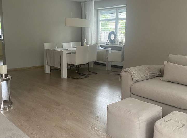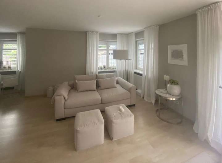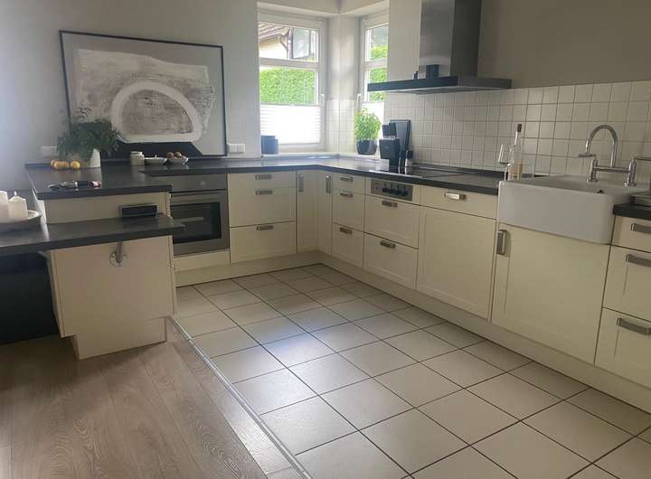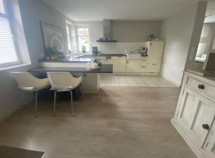 Im Erdgeschoß befindet sich ein Wohnzimmer und die vorgelagerte offene moderne Küche.
