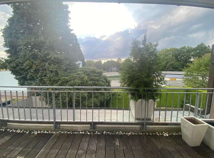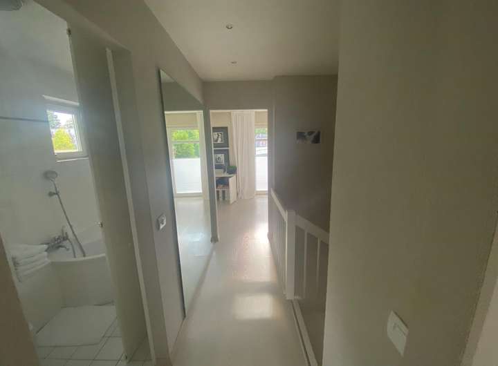 Das Obergeschoß hat eine Terrasse/Balkon mit kleinem Rundgang zu einer weiteren kleineren Terrasse zur Südseite.