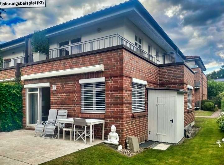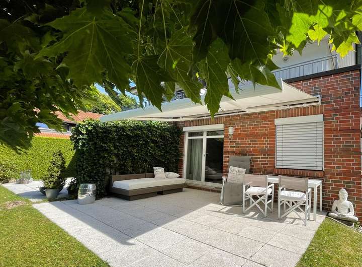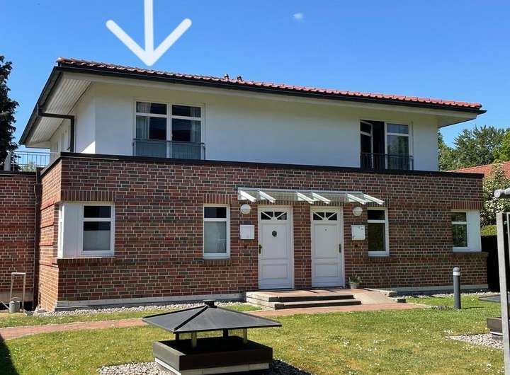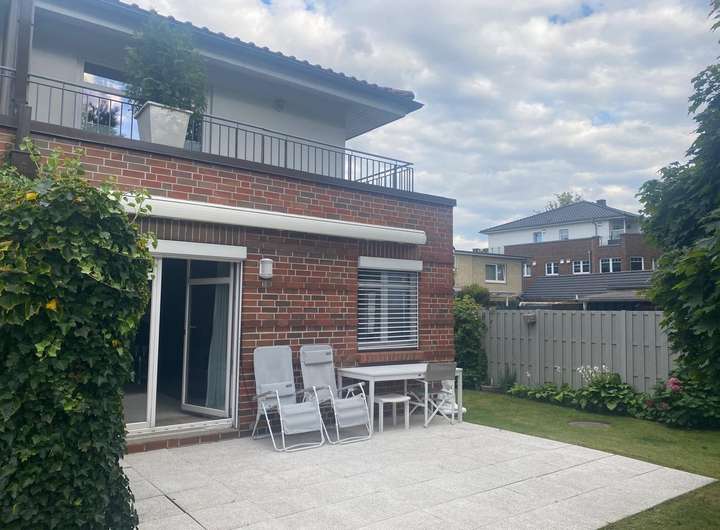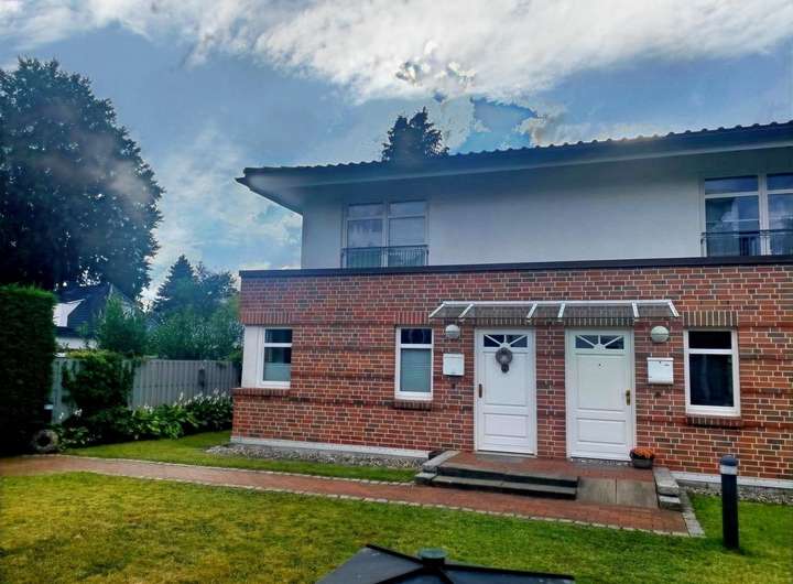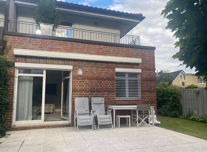 Die Doppelhaushälfte in einem Zweifamilienhaus liegt im hinteren Grundstücksbereich im Lerchenberg-Hamburg-Volksdorf.