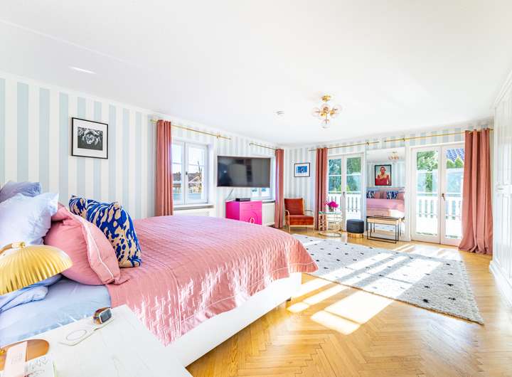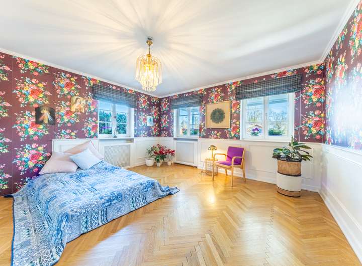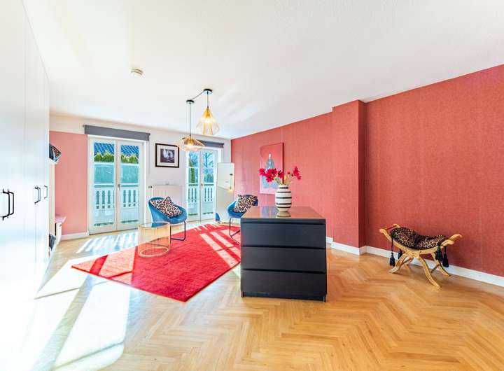 Im Obergeschoss bieten 4 Schlafzimmer mit umlaufendem Balkon und zwei Bäder, sowie ein traumhaft helles und großzügiges Dachgeschoss viel Platz für eine große Familie.