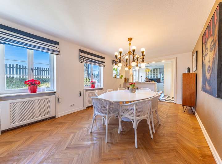 Das Haus mit seinem großzügigen Garten ist wie geschaffen für Menschen, die sowohl Tradition als auch Komfort zu schätzen wissen und denen Gastlichkeit und Familienleben in besonderem Maße wichtig ist.
