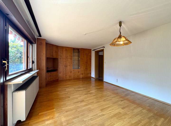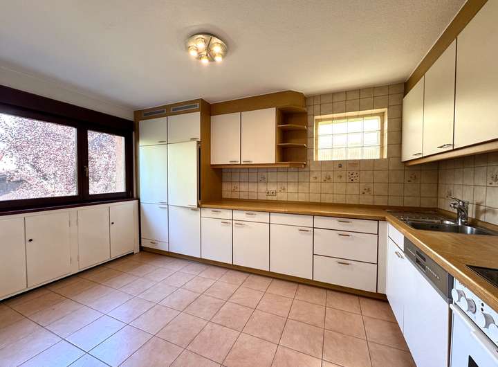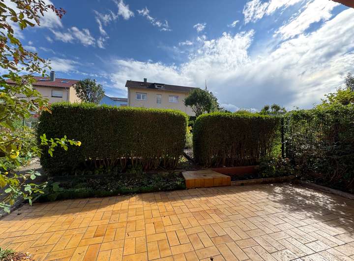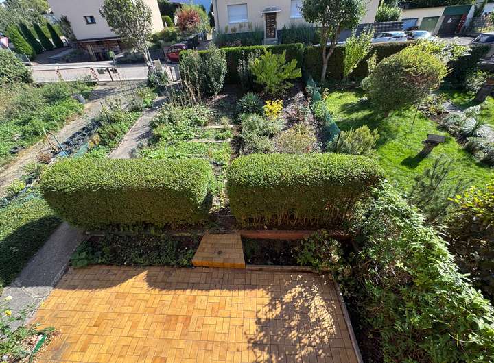 Im Erdgeschoss empfängt Sie ein großzügiges Wohnzimmer mit direktem Zugang zur Terrasse – hier genießen Sie sonnige Stunden unter der Markise mit Blick in den eigenen Garten. Die große Wohnküche, ausgestattet mit einer Einbauküche (2015), lädt zu gemütlichen Kochabenden ein. Ein separates Gäste-WC sowie eine praktische Abstellkammer komplettieren das Erdgeschoss.