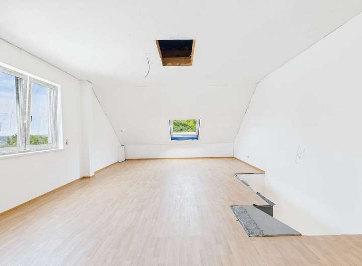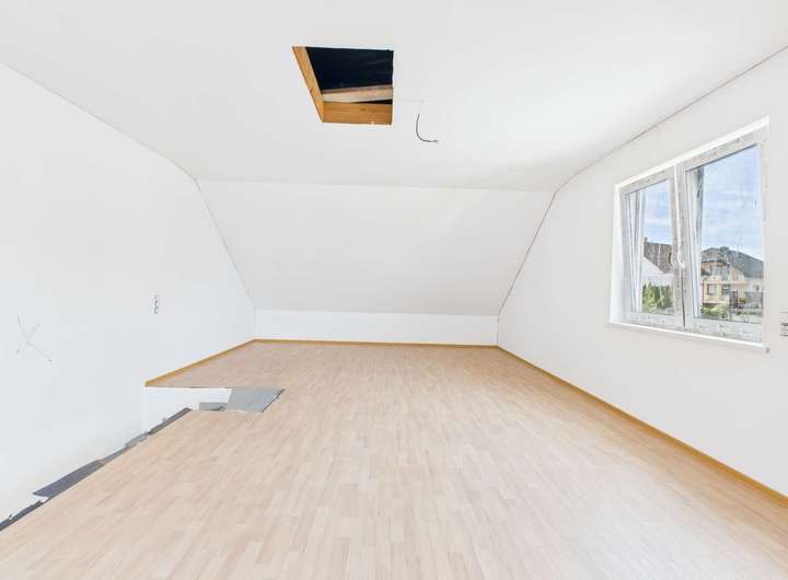 Ein echtes Highlight bietet das ausgebaute Dachgeschoss: Ein großzügiger, lichtdurchfluteter Raum, welcher sich flexibel als Arbeitsbereich, Atelier oder Ruhezone nutzen lässt. Zusätzlich besteht die Möglichkeit, einen Dachboden zu errichten – ideal als praktischer Stauraum für saisonale Gegenstände.