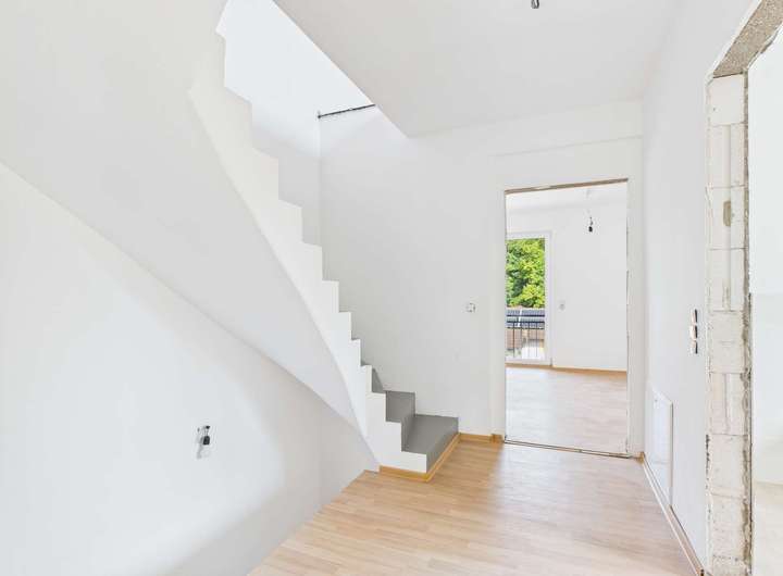 Die Immobilie befindet sich aktuell noch in der Bauphase und ist nicht vollständig fertiggestellt. Um einen ersten Eindruck zu vermitteln, wurden beispielhafte Bodenbeläge verlegt. Als Käufer haben Sie jedoch die Möglichkeit, bei der finalen Ausstattung mitzuwirken. So können unter anderem Bodenbeläge, Innentüren sowie das Geländer der Treppe nach Ihren persönlichen Vorstellungen ausgewählt und angepasst werden – für ein Zuhause ganz nach Ihrem Geschmack.