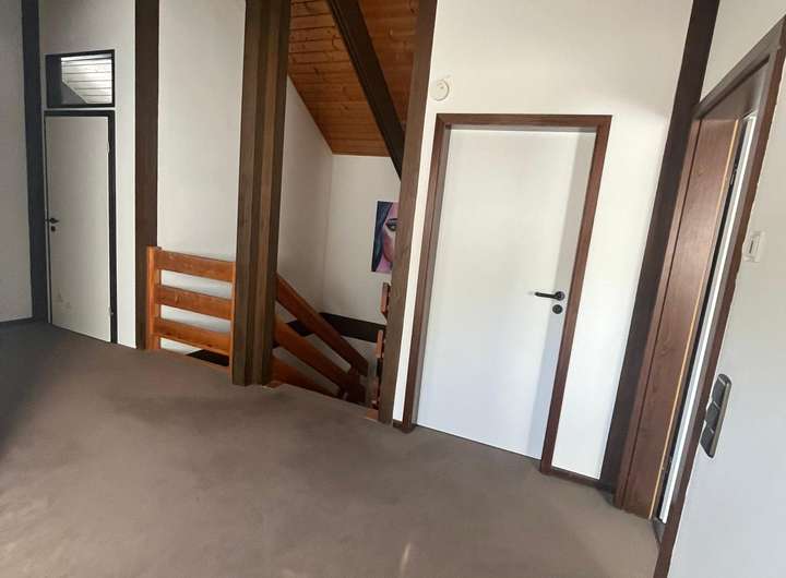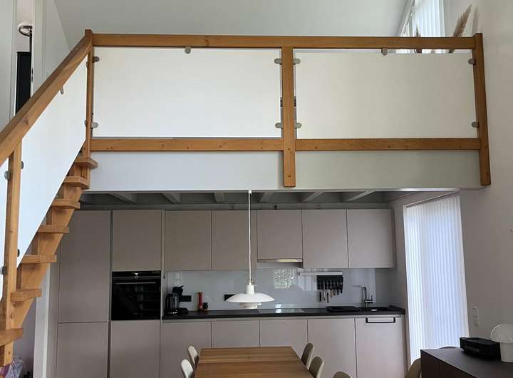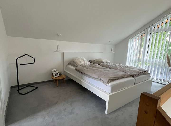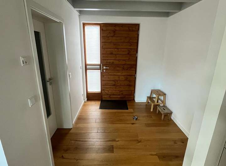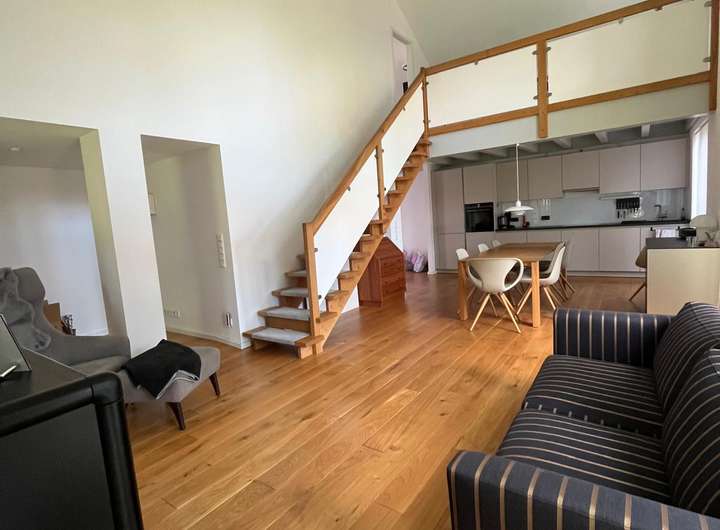 Beide Einheiten sind baulich miteinander verbunden und können wahlweise getrennt genutzt oder durch einen einfachen Durchbruch zu einer großzügigen Wohneinheit vereint werden. Die lichtdurchflutete, giebeloffene Holzständerbauweise schafft in beiden Bereichen ein offenes, freundliches Raumgefühl. Das durchdachte Raumkonzept sowie eine flächendeckende Fußbodenheizung sorgen für ein behagliches Wohnklima und hohen Wohnkomfort.