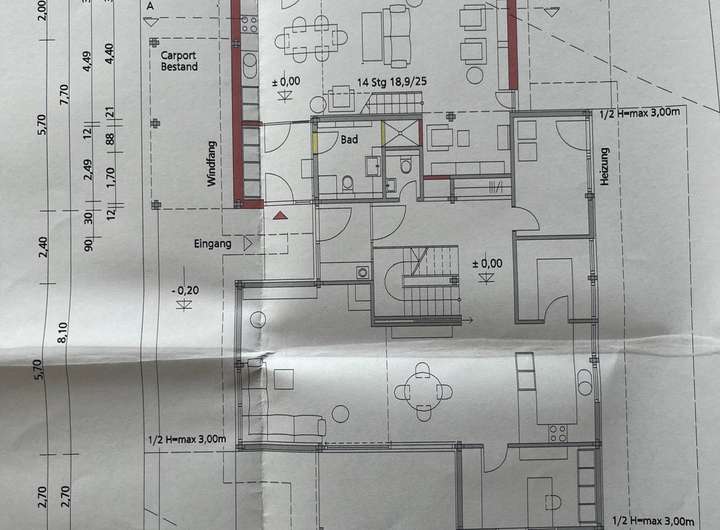 • Fliesenboden im Erdgeschoss, Teppich im Obergeschoss