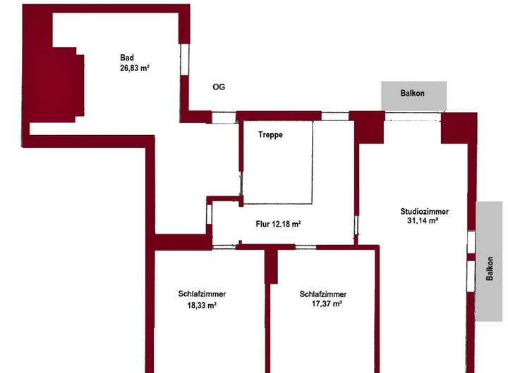 Im OG des Hauses stehen Ihnen 3 große Schlafräume zur Verfügung. Der größte Schlafraum gleicht durch seine Raumhöhe einem Studio und verfügt über einen tollen, sonnigen Balkon.