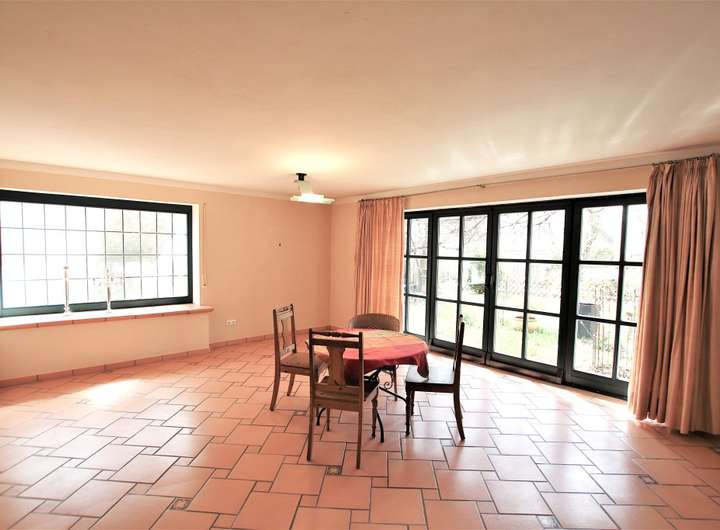 Von da aus gelangt man auf die traumhafte Sonnenterrasse mit angrenzendem herrlich gestalteten, weitläufigen Garten.