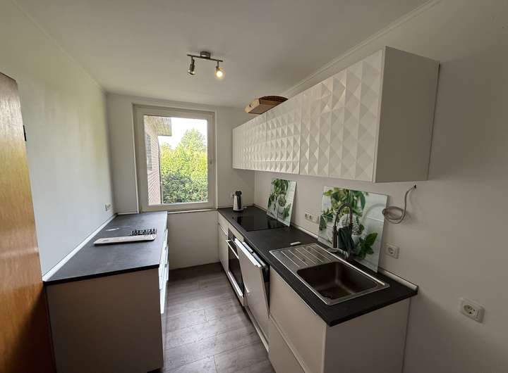 Die Einliegerwohnung im Dachgeschoss ist aufgeteilt in vier Zimmer unterschiedlicher Größe und eine Küche. Bad und WC stehen im Erdgeschoss zur Verfügung.