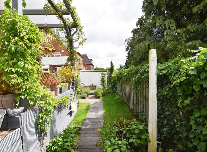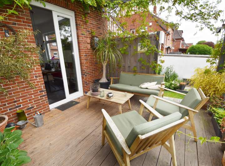 Der Garten befindet sich in einem sehr gepflegten Zustand. Eine große Terrasse bietet viel Platz zum Entspannen. Sonnenschein bis in die Abendstunden verspricht die schöne Lage des Gartens.
