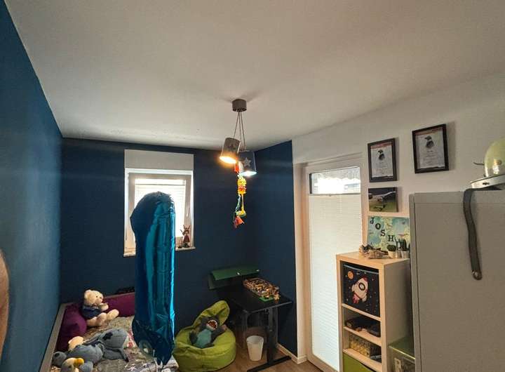Zur Wohnung gehören außerdem ein eigener Kellerabteil sowie ein KFZ-Stellplatz hinter dem Gebäude. Die Fliegengitter und Plissees können bei Interesse von den Vormietern übernommen werden.