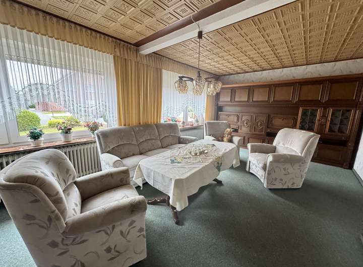 Erdgeschoss: klassische Raumaufteilung mit Wohnzimmer, Küche, Essbereich, sowie Bad und Schlafzimmer ermöglichen ebenerdiges Wohnen.