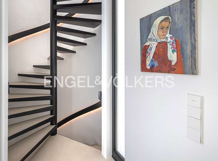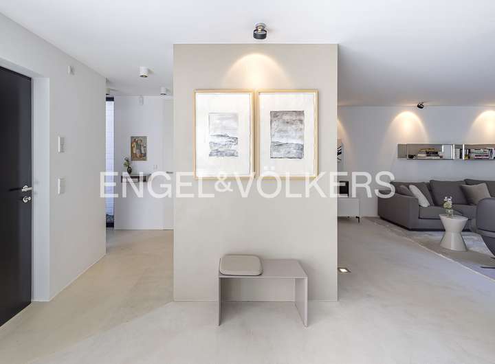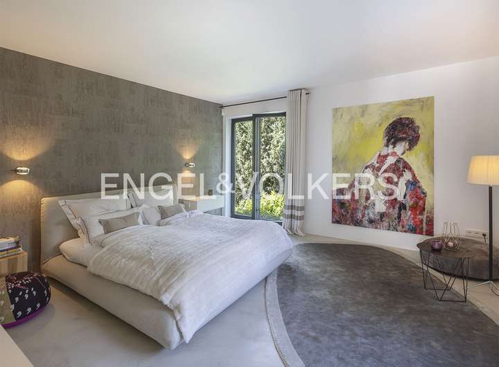 Errichtet wurde diese außergewöhnliche Stadtvilla 1978 als Teil einer architektonisch und städtebaulich bemerkenswerten Wohnanlage. Mit zwanzig individuell geplanten Einfamilienhäusern in Massivbauweise wurde hier vom Architekten Friedrich Asche ein Statement der Moderne in bevorzugter Umgebung gesetzt. Wohnästheten werden hier ihr Paradies finden. Design und Funktionalität wurden bei der umfassenden Kernsanierung 2015 mit Gespür für den besonderen Charakter der Anlage berücksichtigt. Alle Aspekte moderner Technik und anspruchsvoller Gestaltung wurden zu einem harmonischen Ganzen zusammengefügt. Der ursprüngliche Design-Gedanke blieb erhalten. Der Wohnbereich präsentiert sich hell und lichtdurchflutet, mit beeindruckenden Blickachsen und fließenden Übergängen zum Essbereich sowie der offenen italienischen Luxus-Küche. Bodentiefe, rahmenlose Fensterfronten gewähren großzügigen Blick in den asiatisch inspirierten Garten mit wertvoller Bepflanzung. Die bodengleichen Schiebetüren ermöglichen den Zugang zu den verschiedenen Terrassen und Gartenbereichen. Geräumige Wohnräume charakterisieren auch die beiden oberen Etagen. Im Obergeschoss liegen der geräumige Masterbereich mit Schlafzimmer sowie dem, aktuell als Bibliothek bzw. Arbeitszimmer genutzten Raum, und die geschickt eingebaute Ankleide. Das stilvolle Designerbad ist eine einladende Wellness-Oase. Das Dachgeschoss wurde als großes Studio ausgebaut. Das offene, helle Raumkonzept vereint Schlafen, Wohnen und Arbeiten. Das im gleichen Stil gehaltene exklusive Duschbad sowie die geschützte Dachterrasse bieten einen lichtdurchfluteten Rückzugsbereich für ältere Kinder, kreatives Arbeiten oder Gäste. Im Souterrain befindet sich ein einladender Gästebereich mit eigenem Bad sowie das Home-Gym. Platz ist vorhanden für den Einbau einer Sauna. Für die Hausarbeit, Wäsche und Stauraum gibt es weitere Räumlichkeiten. Hier wie überall im Haus komplettieren hochwertige, maßgefertigte Einbauten das Erscheinungsbild der Räume für eine Atmosphäre der Ruhe und Harmonie. Lassen Sie sich von dem besonderen Stil dieser bezugsbereiten Stadtvilla begeistern. Gerne zeigen wir Ihnen diese Rarität bei einem individuellen Besichtigungstermin.