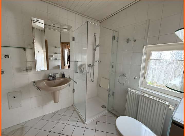 Bad mit Dusche, Einbauküche, Kunststofffenster, Parkettboden, Terrasse