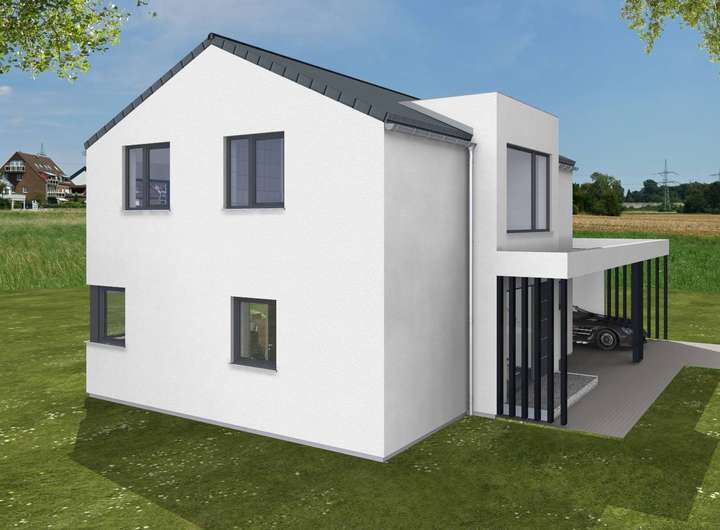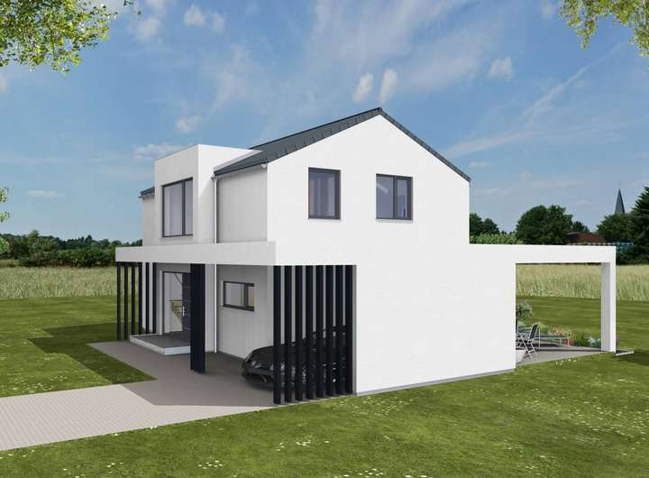 Dieses Grundstück kann mit einem modernen, zweigeschossigen Haus bebaut werden. Perfekt für ein KAMPA Haus. Das Bauvorhaben befindet sich noch in der Planphase, die hier gezeigte Hausauswahl soll Ihnen lediglich als Inspiration dienen.