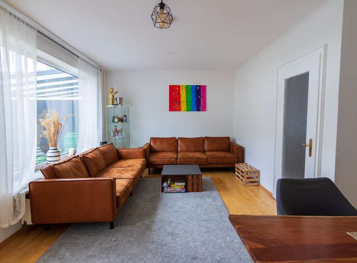 Die Immobilie verfügt über 5 Wohnräume, ein Gäste-WC im Erdgeschoss, ein weiß gefliestes Duschbad im Obergeschoss und ein modernes Wannenbad mit WC im Dachgeschoss. Der schöne Wohnbereich mit Platz für einen Esstisch wird durch die große Fensterfront lichtdurchflutet und bietet Zugang zur Terrasse und zum Garten, der nach Südwesten ausgerichtet ist. Das Dachgeschoss erreichen Sie über eine feste Treppe. Hier befindet sich ein großzügiger Raum und auch ein weiteres Bad mit Wanne. Der Keller ist teilweise beheizt und gefliest. Von außen gibt es einen Kelleraufgang zum Garten. Das Haus wurde in den letzten Jahren teilweise saniert und befindet sich in einem gepflegten Zustand. Die Gaszentralheizung wurde 2019 erneuert. Die Bäder wurden in den letzten Jahren umfangreich saniert und befinden sich in einem modernen Zustand.