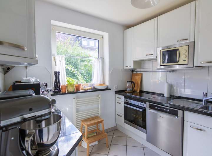 helle, ältere Einbauküche mit allen elektrischen Geräten, Herd aus 2023