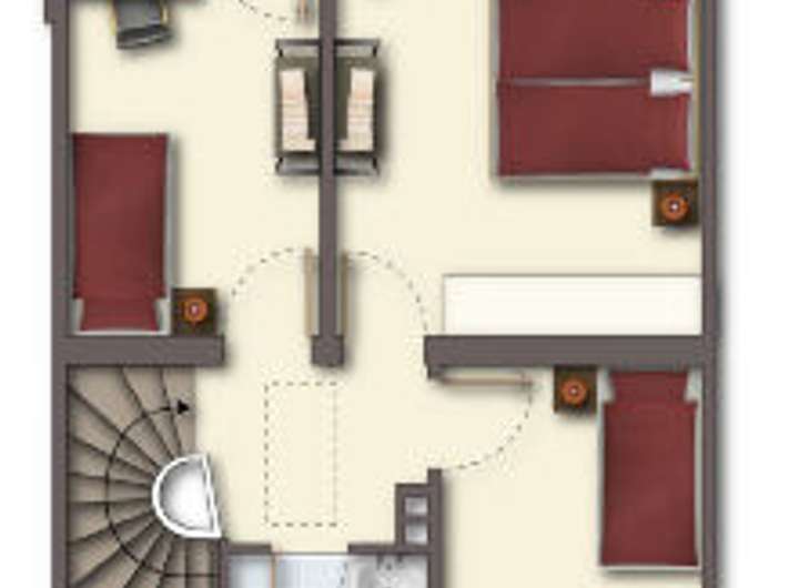Über eine massive Holztreppe erreicht man das Obergeschoss, hier stehen drei Schlafzimmer - teilweise mit Balkon -, ein Flur und ein Tageslichtbad mit Wanne zur Verfügung.