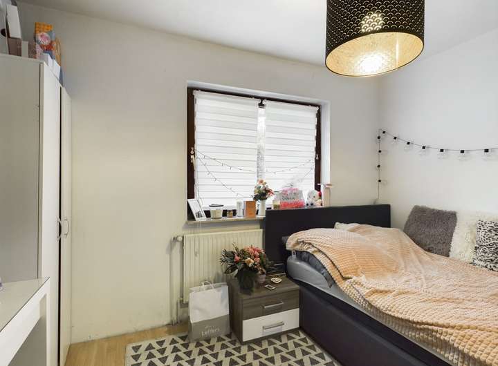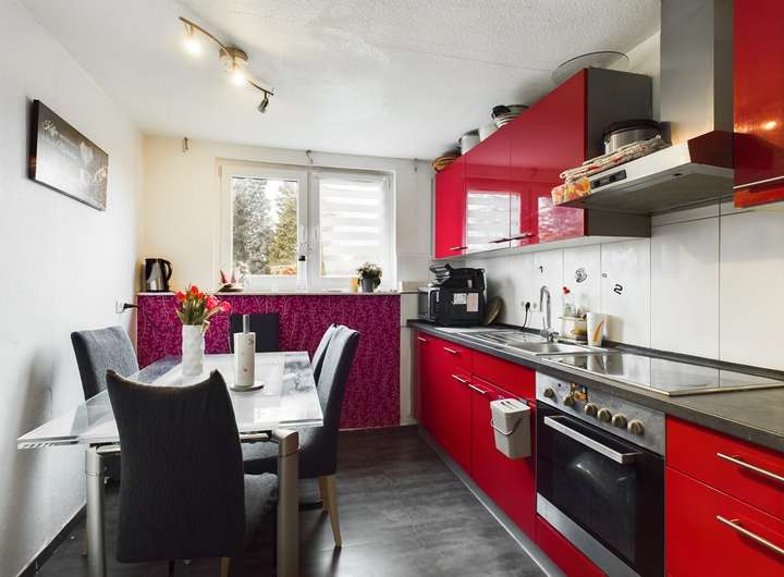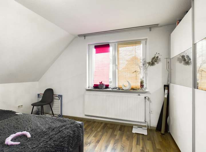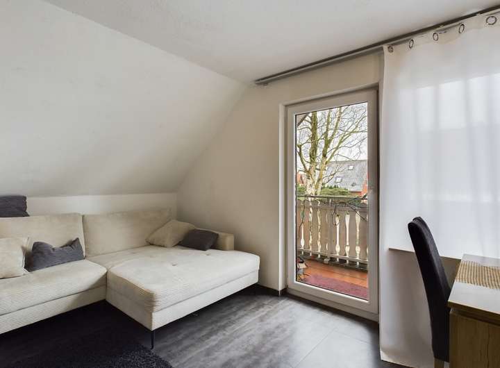 Die Dachgeschosswohnung mit ca. 74 m² Wohnfläche präsentiert sich in einem renovierten Zustand. Hier stehen ein gemütliches Wohnzimmer, ein Schlafzimmer, ein Kinderzimmer, eine moderne Küche, ein Badezimmer sowie ein Flur zur Verfügung. Zudem bietet ein Balkon zusätzlichen Wohnkomfort.