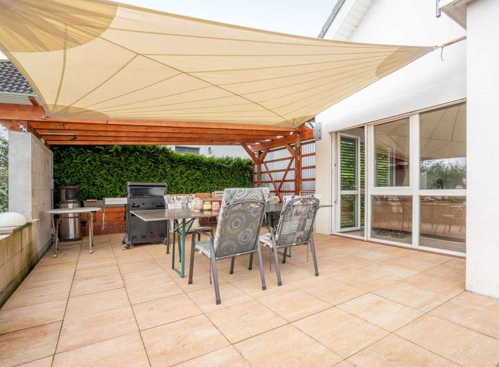 Der Außenbereich besticht durch einen gepflegten Garten mit Rasenflächen, Bäumen und viel Platz zur Erholung. Ein ca. 14 m² großes Gewächshaus, eine Zisterne, ein ca. 15 m² großer Schuppen sowie ein Doppelcarport stehen Ihnen ebenfalls zur Verfügung. Für nachhaltige Mobilität sorgt eine installierte Wallbox.