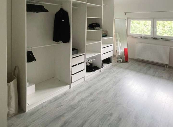 Im Erdgeschoss befindet sich der großzügige Wohn- und Essbereich, sowie die Küche.Ein Gäste-WC ergänzt die Etage.