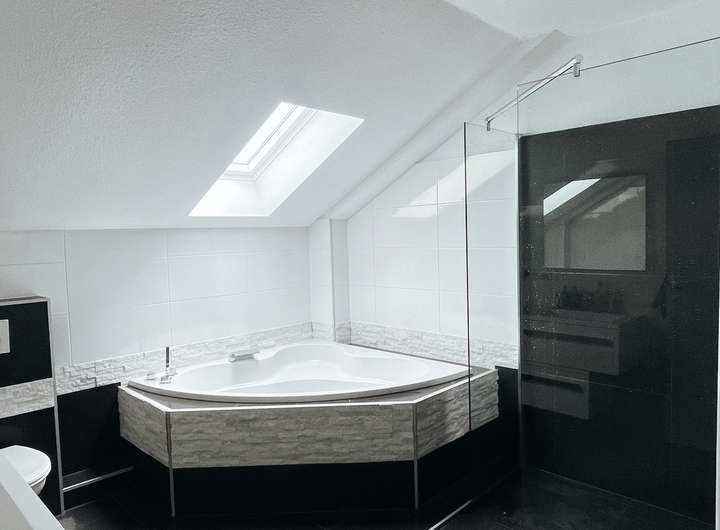 Modernes Badezimmer mit Dusche und/oder Wanne