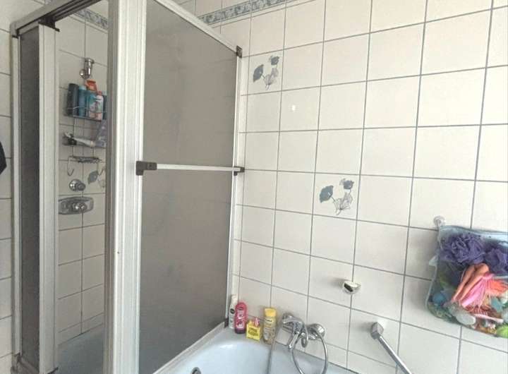 - Badezimmer mit Dusch – Badewanne, WC, Waschbecken sowie einem Einbauschrank