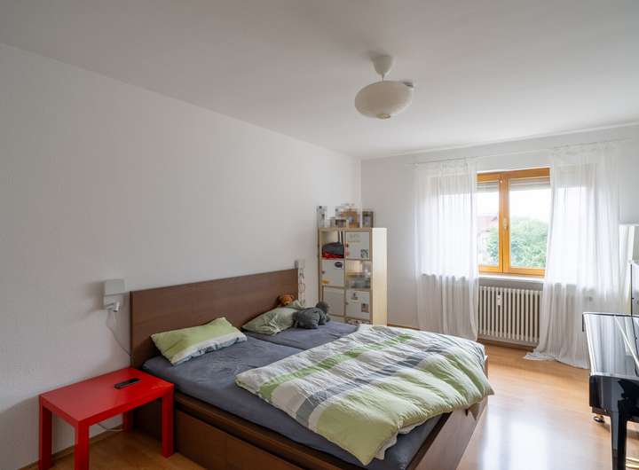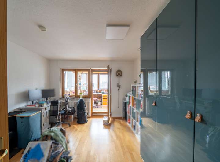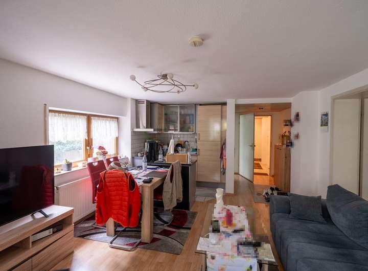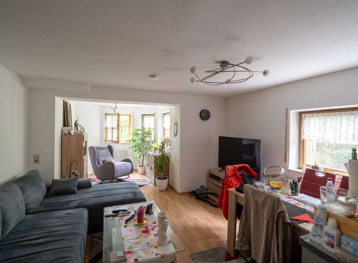 Weiter befindet sich im Dachgeschoss eine ca. 72 m² große 3,5-Zimmer-Wohnung, mit hohen Decken, welche für ein sehr angenehmes Wohnambiente sorgen. Diese Wohnung wurde im Zuge der Kernsanierung 1994/1995 ausgebaut. Eine offene Wohnküche bietet viel Wohnraum. Vor allem der auf dem Erker des Hauses gebaute Süd-West-Balkon mit Weitblick nach Villingen macht diese Wohnung aus.