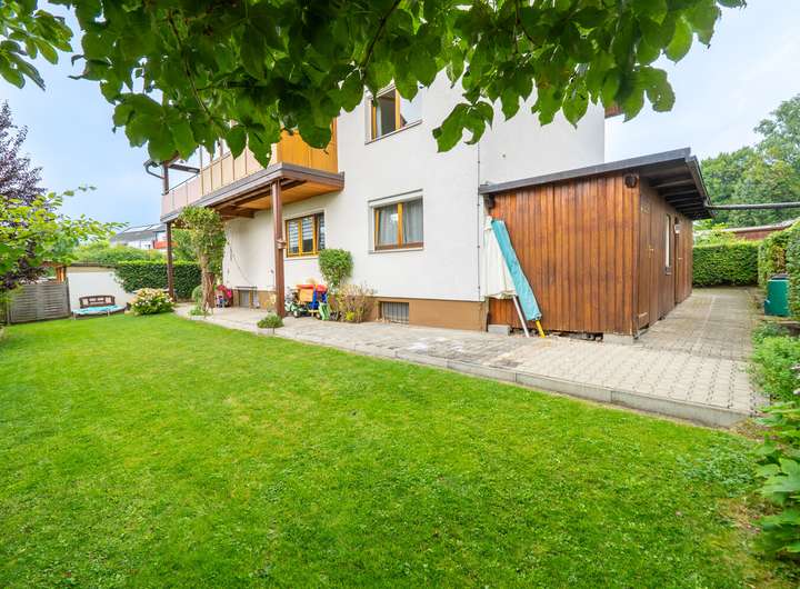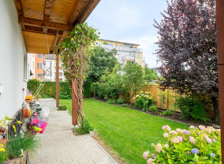 Ein Vorgarten im Westen sowie ein schöner Garten im Süden, welcher zum Spielen für Kinder oder einfach für in Ruhe verweilen einlädt, runden dieses besondere Immobilienangebot ab.