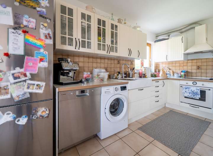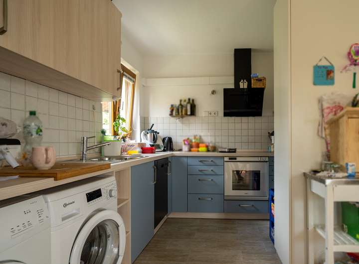 Des Weiteren besteht im Untergeschoss neben den typischen Kellerräumen eine 2,5-Zimmer-Einliegerwohnung, ebenfalls mit offener Küche gestaltet. Durch die Höhenlage des Untergeschosses erhält auch diese Art Souterrain-Wohnung ausreichend Tageslicht, sodass sich der Mieter wohlfühlen kann.