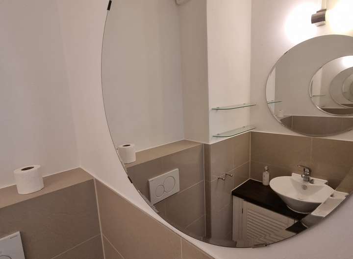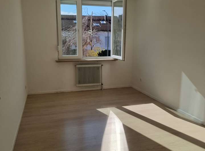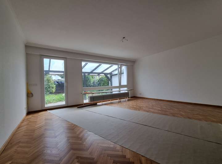 - Massivholzparkett im Wohnzimmer wurde 2025 neu abgeschliffen und eingelassen