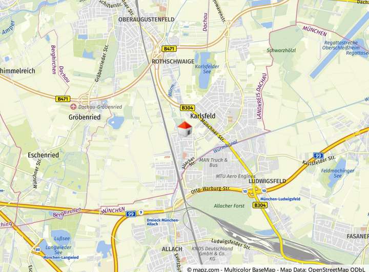 Karlsfeld selbst liegt direkt an der westlichen Stadtgrenze von München und bietet erstklassige Verbindungen. Die S-Bahn ist mit dem Bus in 12 min erreichbar und innerhalb der Gemeinde fahren verschiedene Buslinien, so dass auch hier durchaus auf Fahrten mit dem PKW verzichtet werden kann. Über die Autobahn A99 sind der Flughafen und die Messe sehr gut erreichbar. Die Gemeinde Karlsfeld zeichnet sich zudem durch eine moderne und umfassende Infrastruktur aus. Schulen und Kindergärten befinden sich in großzügiger Anzahl direkt im Ort. Im Zusammenspiel mit dem nahe gelegenen Dachau bzw. den Münchner Stadtteilen Allach, Ludwigsfeld und Fasanerie bietet diese Lage, ein erstklassiges Angebot.