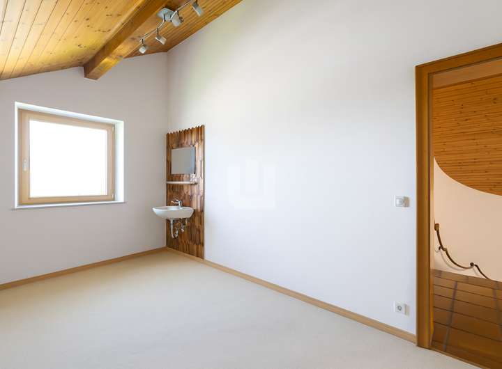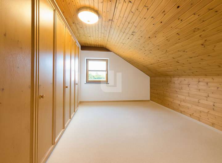 Das Dachgeschoss beherbergt drei gemütliche Schlafzimmer, die sich perfekt als Rückzugsorte für die ganze Familie eignen. Ein großzügiges Badezimmer mit hohen Decken sorgt hier für Komfort und Wohlbefinden.