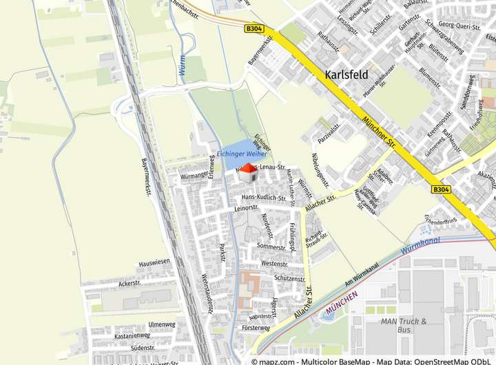 • Karlsfeld(West)-Gymnasium (im Bau)-Einkaufsmärkte-Gartenstraße