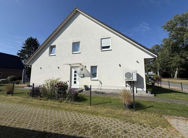 Das Haus überzeugt bereits beim ersten Anblick durch seine klare Architektur: eine helle, weiß verputzte Fassade, ergänzt durch ein anthrazitfarbenes Satteldach mit markanter Trapezgaube. Im Inneren erwarten Sie helle Räume, moderne Haustechnik und ein durchweg hochwertiger Ausstattungsstandard.
