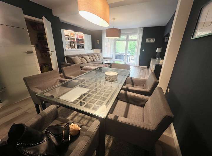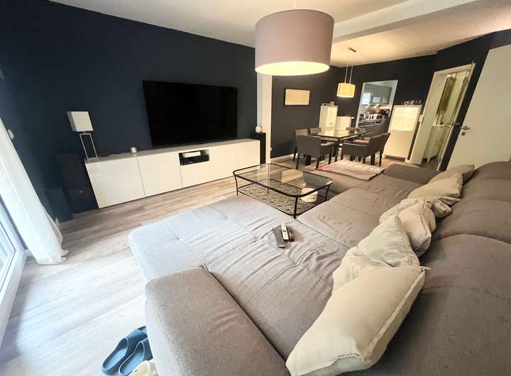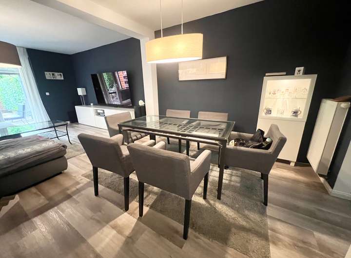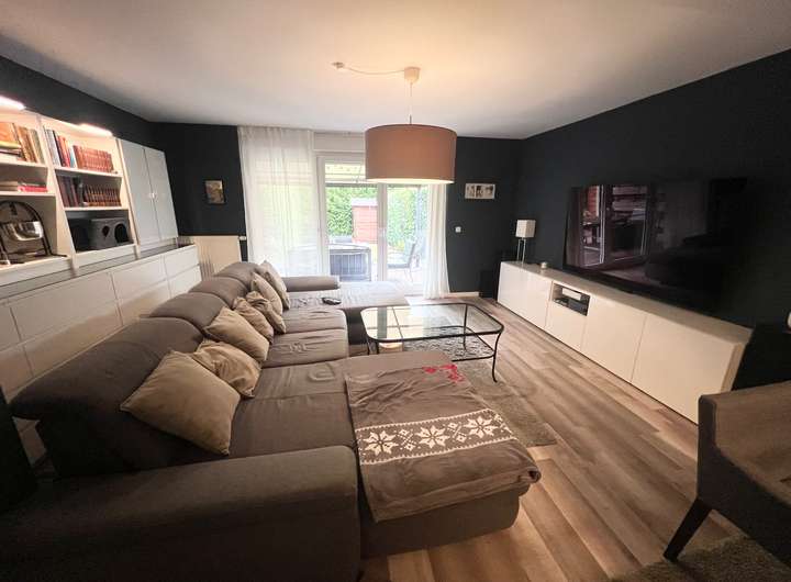Vom Wohnzimmer aus gelangen Sie auf die in Süden ausgerichtete Terrasse sowie in den Gartenbereich.
