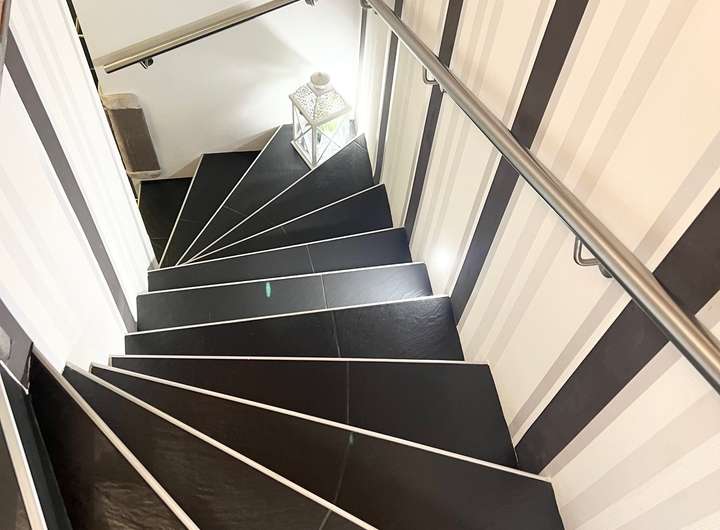 Die Fußböden im Haus wurden in den Wohnräumen mit Laminatboden und im Flur-und Küchenbereich mit Fliesen ausgestattet. Der Bodenbelag im Wohnzimmer wurde im Jahr 2023 durch modernen Vinylboden ersetzt.