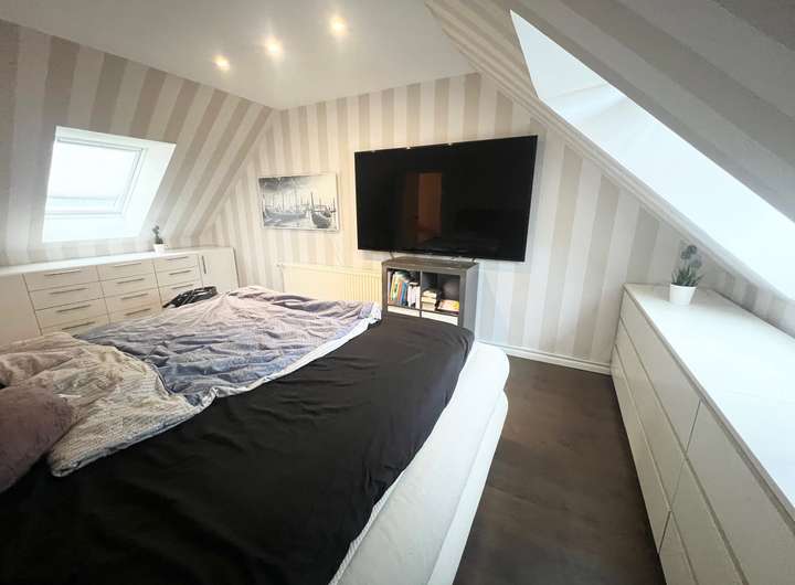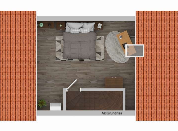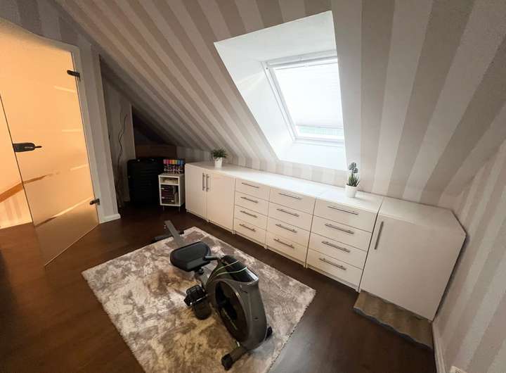 Der Dachboden des Hauses wurde ausgebaut und hier befindet sich ein weiteres Schlafzimmer. Der darüberliegende kleine Spitzboden bietet weitere Abstellmöglichkeiten.